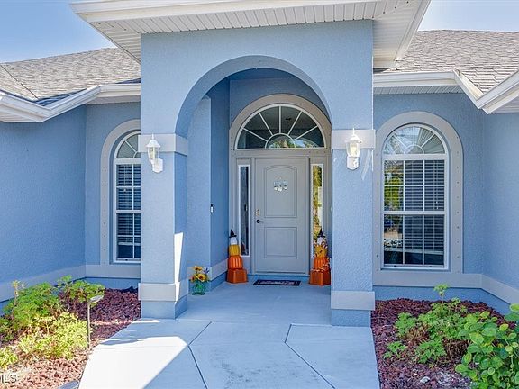 Discover refined Florida living in this expansive and beautifully appointed pool home located in the highly desirable NE Cape Coral corridor, just minutes from US-41, premier shopping, dining, and recreation. Showcasing an impressive open layout, this residence welcomes you with separate formal living and dining rooms, an oversized family room overlooking the resort-style screened lanai, and an east-facing backyard that captures tranquil morning light while the west-facing front of the home enjoys breathtaking sunsets. The gourmet eat-in kitchen features an oversized island and abundant prep space, complemented by an exceptional laundry room that doubles as a spacious walk-in pantry. A thoughtful split-bedroom design positions all four bedrooms on the north side of the home for enhanced privacy and comfort. Outdoors, the large screened-in lanai and sparkling in-ground pool—completed in 2022 with a child safety fence—create an inviting retreat, enhanced by fully landscaped grounds and a newly fenced backyard installed in 2023. The home comes complete with all patio furniture, a 27 kw plug-in generator with a direct connect hookup, a hard-wired alarm system, inside-wall pest control, outdoor lighting, vinyl storm shutters, and a 4-chamber aerobic septic system. Major upgrades include a new roof in 2022 and an AC system installed in 2019. Elegant, spacious, and impeccably maintained, this exceptional residence offers an elevated lifestyle in one of Cape Coral’s most convenient and charming neighborhoods.