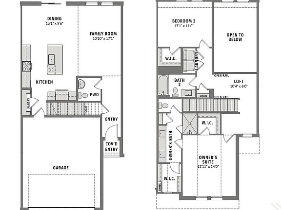 CB JENI HOMES BAYCLIFF floor plan. Great open, dramatic plan! THE BAYCLIFF! 2 bedrooms, 2.5 baths with breathtaking 2 story living room! FENCED BACKYARD WITH OVERSIZED PATIO! Living & dining open to a beautiful gourmet kitchen with beautiful cabinets and huge chefs dream pantry with a huge island. The upstairs loft gives a birds-eye view out of the second floor living window, great for a reading area. Two walk-in closets in the primary suite! Beautiful floors grace the 1st floor…too many options to list! MOVE IN READY NOW!
