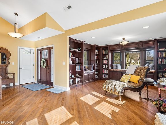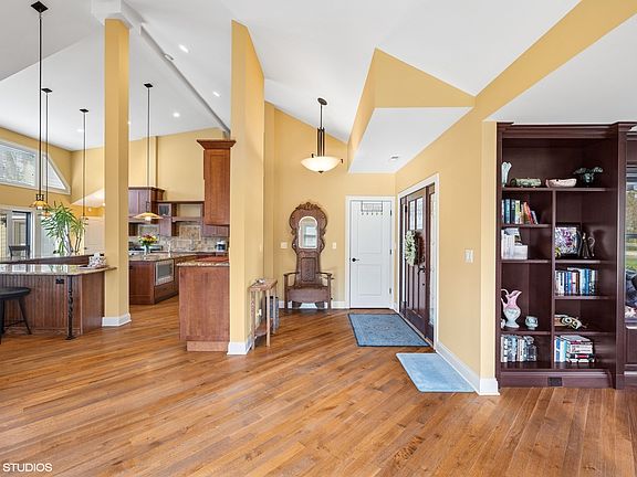 Welcome to your own private oasis! This impressive 3-bedroom, 3-bathroom ranch, rebuilt in 2010, offers 3,682 square feet of luxurious living space. Meticulously maintained and filled with sunlight, this open floor plan with dramatic vaulted ceilings is perfect for entertaining. Step inside to discover beautiful hardwood floors throughout the main level. The gracious foyer leads to a cozy living room with built-in shelving (currently utilized as library), and a sprawling 32-foot great room featuring a charming brick fireplace. The heart of the home is the dream eat-in kitchen, boasting a generously oversized island ideal for meal prep and casual dining, granite countertops, a Sub-Zero refrigerator, and two sinks for added convenience. Retreat to the primary bedroom, complete with wall of custom built-in closets and an ensuite bath featuring a whirlpool tub and spacious shower. The second bedroom offers its own full bathroom, ensuring comfort and privacy for guests or family members. The main floor also includes a spacious laundry room equipped with cabinetry and a built-in table. Upstairs, you'll find a versatile space perfect for an office, man cave, or teenager's retreat, complete with extra closets for storage. Extend your living space outdoors with a serene screened porch with slider doors, ideal for reading or entertaining 9 months a year . The park-like fenced backyard features a deck with built-in bench seating, offering the perfect setting for gatherings with family and friends. This home truly has it all-a peaceful retreat with modern amenities. Come experience this exceptional property for yourself and make it your HOME. (Please exclude fridge in garage. Outside grill as-is, TV above FP in great room + TV in 2nd BR, swing set and firepit stay ).