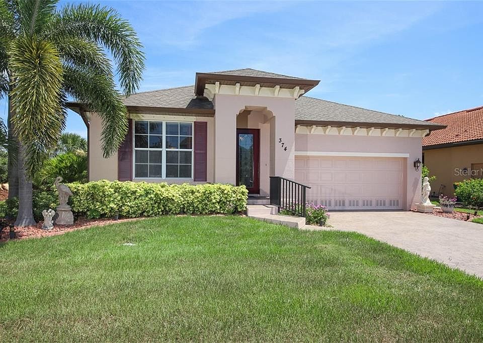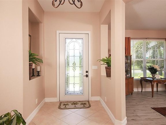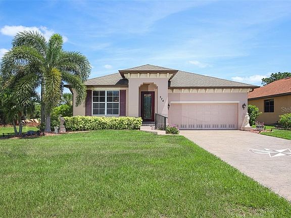 This lovely 2100+ sq ft home is sure to please! Spacious both inside and out, it offers 3 bedrooms PLUS a BONUS room, living room & formal dining area, a large kitchen AND spacious family/great room! Beautifully maintained with elegant appointments such as matching wood cabinets & solid surface counters throughout, 8 ft high doorways and 9 ft ceilings. Exterior and interior have both been painted and new plank tile flooring installed in the living/dining area. The kitchen is roomy and offers tons of cabinet space, a floor to ceiling closet pantry, built-in desk, a working island and a 12 ft long breakfast bar! The master bedroom looks over the pool area (with quick access to the hot tub!) and offers a nice walk-in closet; master bath has dual sinks, a soaking tub and a walk-in shower. Between the guest bedrooms is a similar-sized "bonus" area currently used as an office, but could be a play room, exercise room or a cozy "snug" room. The pool area is spacious as well with plenty of room for both shade seekers AND sun seekers. The above-ground hot tub is luxurious and comes with the home as well! Patio has been tiled and concrete curbing has been added outside; Even the garage flooring has been done in the Gorilla Garage floor coating system, as well as the driveway in a lovely stamped concrete design. Located in the popular community of Rotonda Lakes, in Rotonda West, super close to numerous golf courses AND a short drive to the beaches and boat ramps of the Gulf of Mexico! This home has been beautifully maintained both inside and out, and it shows! CALL TODAY!