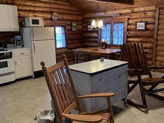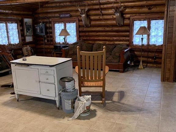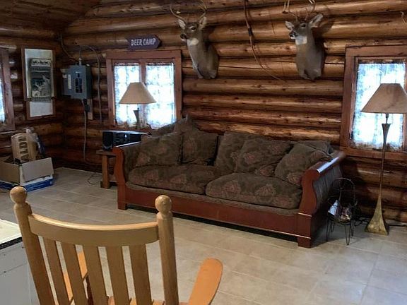 Beautiful log cabin sets on 10 acres, with a two bedroom and bathroom bunk house behind log cabin. It is a must see, very private and only 2 miles from town. It also has a 24x24 garage to store all your toys. This property backs up to state land it doesn't get any better than this. Come see for yourself.