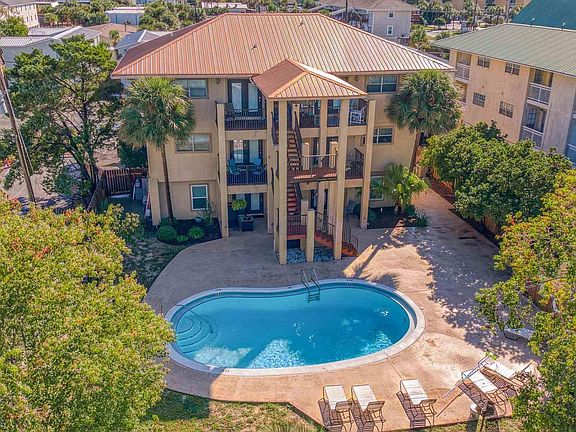 Experience coastal living at its best with this beautifully furnished condo offering amazing views. Located on the second floor of a three-story building, this 2-bedroom, 1.5-bath unit provides 875 square feet of comfortable living space. The open-concept layout features a bright living area, a well-appointed kitchen with a breakfast bar, and an inviting eat-in dining space. Enjoy relaxing outdoors on the covered decks at both the front and back of the condo.  The community offers great amenities including a sparkling pool, fenced yard, and BBQ area—perfect for entertaining or unwinding after a day at the beach. Just a short walk to the stunning white sand beaches, this condo is ideal for a vacation retreat, rental investment, or full-time residence.