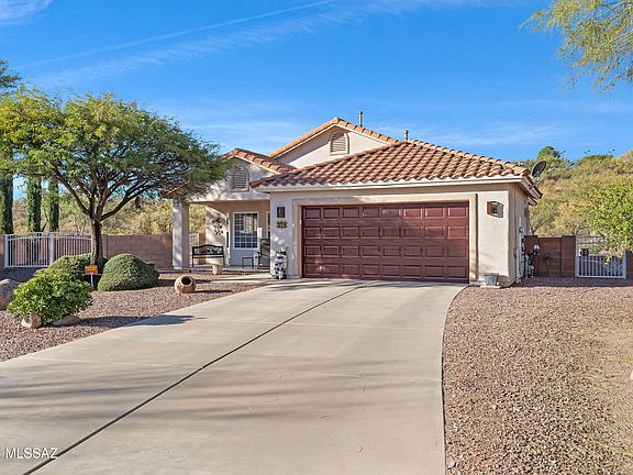 Enter into luxury with this Avatar built home, nestled on a spacious lot, within the highly desired neighborhood of Bella Vista in Rio Rico. The high ceilings welcome you into a well-designed, split-bedroom floor plan with ceramic tile floors resembling wood, complementing the tan walls. The open formal dining area features sliding glass doors leading to a private back patio, while large picture windows in the living area offer stunning views of the fully landscaped backyard with desert views and no back neighbors. Enjoy low-maintenance outdoor living with an extended covered patio perfect for entertaining, or relaxing and enjoying the stunning Arizona sunsets. This quiet neighborhood is in close proximity to all the amenities, including: supermarket, gas stations and restaurants.