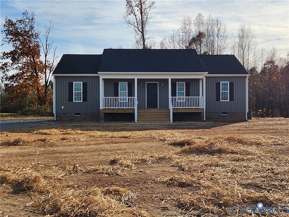 NEW CONSTRUCTION ALMOST COMPLETE ON OVER 9 ACRES!! DEER RUN ESTATES- -LOT 4 --NO HOA!!! NEW CONSTRUCTION- ASK ABOUT CLOSING COSTS ASSISTANCE WITH USE OF PREFERRED LENDER. Plus the possibility of GRANT FUNDS!! Still time to pick colors!! NEW HOME ON 9.08+/- acres just off Rt. 360 in King and Queen County for a quick commute!! The "Hunter" 1400 Sq. ft. plan has 3 bedrooms, 2 full baths, and an open concept feel with Cathedral Ceilings. Exterior has Premium vinyl siding with 30 year Dimensional shingles with front porch, double hung vinyl tilt windows with screens and deep well. Stay comfortable with Heat pump with Central air. Enjoy custom built cabinets and Granite Kitchen countertops! Gutters, Front sidewalk and 10 X 12 Rear salt treated deck included. Located Just north of Richmond Tappahannock Hwy off of Newtown Road, minutes from the school complex and Rt. 360 for a quick commute. Ask about Seller closings costs/buydown assistance. Centrally located between Tappahannock, Mechanicsville, Fredericksburg, West Point, Gloucester and Richmond! Pictures are samples of homes already built by M. Porch Construction LLC. and some extras are shown. Home should be completed around December 2025-January 2026