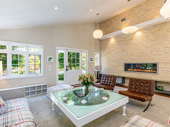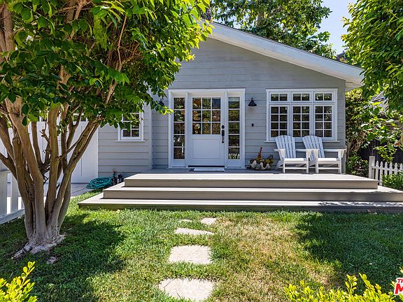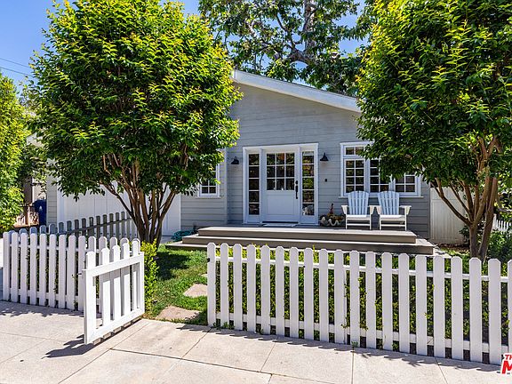 Situated moments from the beach in Santa Monica Canyon, this designer-furnished, Cape Cod-style home for lease features four ensuite bedrooms and a detached studio or guest house. Extensively remodeled, the single-story home is nestled on a private, tree-lined property, featuring new walnut floors, soaring ceilings and expansive windows. Open-plan interiors include an abundantly lit living room with rock wall, fireplace and built-in bookcases, as well as a Carerra marble kitchen with breakfast bar and dining area. Four bedrooms feature ensuite baths, including the brand new master with soaking tub, rain shower and doors to the leafy backyard and cabana. Featuring a two-car garage and additional driveway parking, the quiet, private retreat is situated moments from Santa Monica's renowned shopping, dining and beaches.