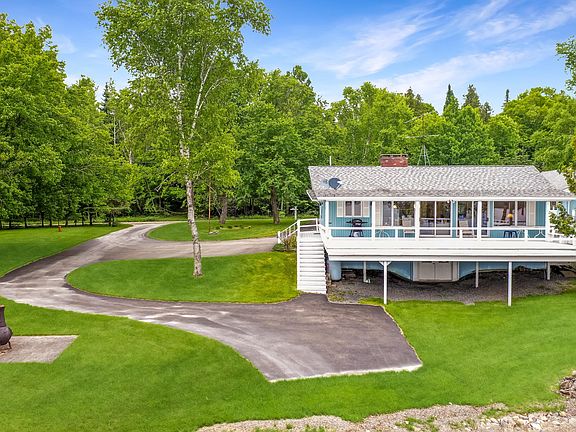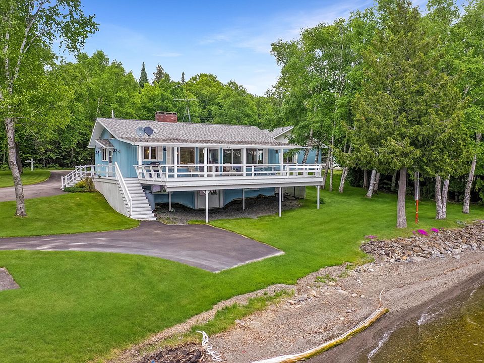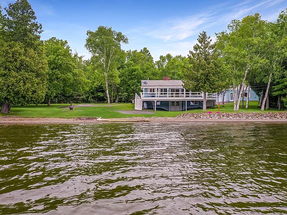 This ranch-style home on Long Lake is ready for year-round living, set on a full walk-out concrete foundation. Multiple heating options include hot water heat, propane fireplace, and a heat pump that also provides air conditioning. The home offers great indoor-outdoor living with a large deck wrapping around three sides. A well-landscaped lot with a wide paved driveway provides easy access from the 3-car garage down toward the lake. The waterfront features a clean, pebbly beach that's perfect for swimming. The 3-car garage includes a full bathroom with shower, a kitchenette, and a cedar closet, making it an excellent space for entertaining or extended use. Inside the home, many windows and doors face the lake, bringing in natural light and panoramic views of Long Lake. Across the road, enjoy additional outdoor space with a cleared area and storage shed. Be sure to explore the 3D virtual tour.