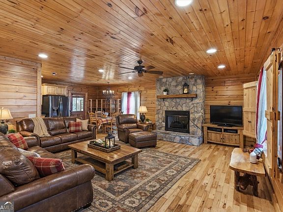 This beautiful 3BR, 2.5BA log cabin offers a cozy stone fireplace, wood finishes, and a main-level primary suite with a spa-like bath. Two additional bedrooms upstairs include walk-in closets, with one featuring a private ensuite. Enjoy covered front and back porches, raised garden beds, a barn-style workshop, and extra storage. The home sits on 6.7 acres, offering usable yard space near the home with wooded privacy beyond-perfect for a quiet retreat.