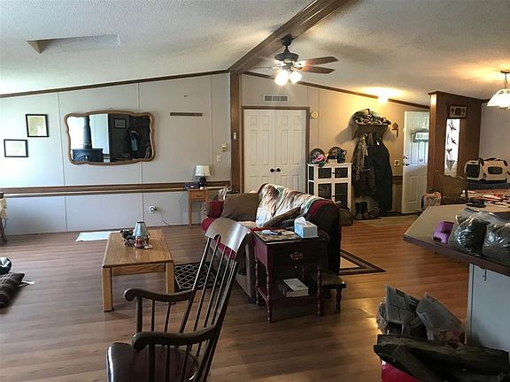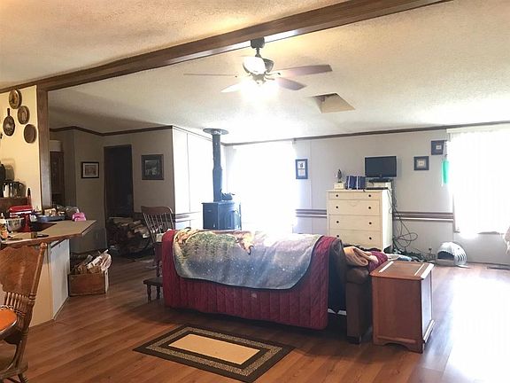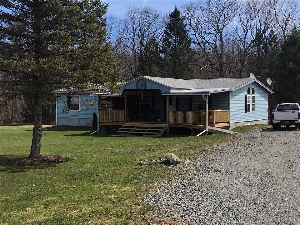 SO MANY UPDATES!! New roof in 2017, New deck and gutter on front in 2018. Wood stove in living room, ceiling fans. Updated bath w/ceramic tile shower & pedestal sink, stone floor. Both bathrooms need some minor finishing touches. New oil tank and concrete pad. New pipes and heat tape installed under M/H. Garage has a new garage door & single door entryway. There is also a wood stove in garage. Newly stoned driveway w/improved drainage. Big yard w/raised bed gardens. A great country location!