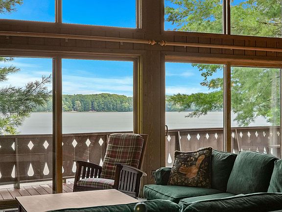 Set along the shores of private Island Lake, this enchanting year-round home offers 100 feet of waterfront and an open floor plan that showcases sparkling lake views from the main living spaces. Warm beamed ceilings and two inviting fireplaces create a welcoming atmosphere, while the finished walkout lower level provides generous space for guests to relax and unwind. Enjoy the outdoors from a spacious lakeside deck or an additional patio just steps from the water’s edge, perfect for morning coffee or evening sunsets. Just minutes from downtown Traverse City’s events, restaurants, and shopping, yet far enough away to enjoy complete peace and solitude, this property offers the best of both worlds.
