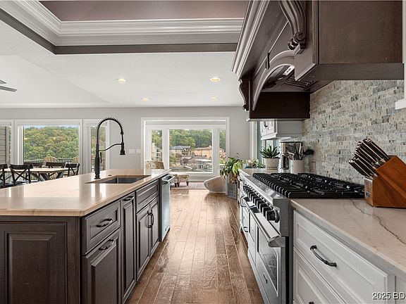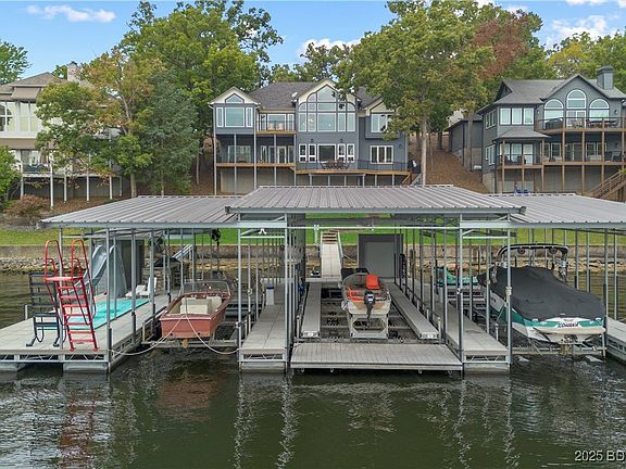 Experience lakefront living at its finest with this stunning 5 bed, 4.5 bath home on the Lake of the Ozarks! Perfectly nestled in a quiet cove with main channel views, this property offers the best of both worlds—peaceful water and breathtaking scenery. Enjoy a massive dock with full cove protection featuring 16x50, 12x40, and 12x28 slips—plenty of room for all your boats and water toys. Inside, the expansive open-concept design showcases a chef’s dream kitchen with high-end Viking appliances, a large island, and generous space for entertaining. Relax on the lakeside decks or gather in the spacious living areas while soaking in the views. Conveniently located near some of the lake’s best waterfront restaurants, shopping, and the historic Bagnell Dam Strip, this home truly offers the ultimate Lake of the Ozarks lifestyle—luxurious, functional, and ready to enjoy!