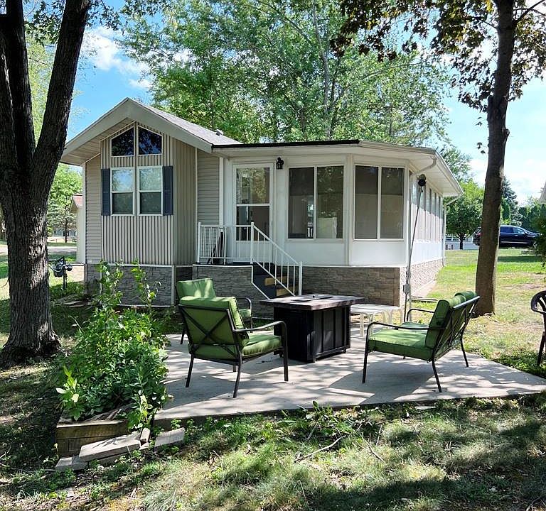 No year-round living! Come check out this beautifully updated 2 bedroom park model situated in a great location within Rock River Leisure Estates. New flooring throughout, new central air and heating unit, and an updated bathroom make this unit feel new! Big, bright kitchen and dining room provide ample space for entertaining, PLUS the awesome addition with large windows. You will also love relaxing in the patio area on summer nights. The underneath of the unit has been completely cleaned out, insulated & beautiful stone skirting installed. Natural gas was recently run to the unit. You can just move in and start enjoying all the amenities the park has to offer including: 2 pools, fishing pond, pickleball courts, country store, live music stage, etc. GOLF CART INCLUDED NOW!