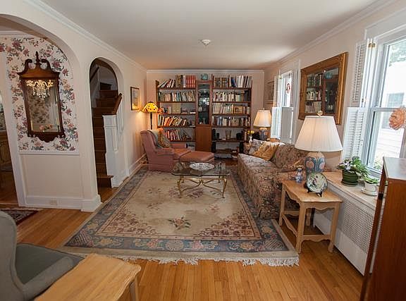 Charming Center Hall Colonial featuring 3 bedrooms, 2 baths in desirable area!! Hardwood floors throughout the home. Formal dining room, living room and kitchen with Corian counter tops! Large family room with sliding glass doors that leads to deck and private backyard!! Enclosed front porch has a mud room and terrific sitting room! Updated bathrooms, one on main level and one upstairs!! Master bedroom has custom closet. Partially finished basement has tons of possibilities. Move right in. Minutes to NJ transit train and steps to bus to NYC.