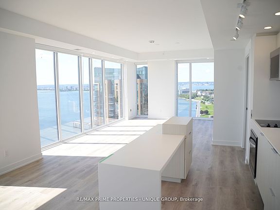 Over 1,300 sq ft of luxury for the refined tenant. Two large bedrooms plus a spacious den. Bright, open concept living. Split layout with bedrooms at either end. Spectacular million dollar views from all around provide Miami vibes. Lots of space to live, work and play. High demand 2+1 layout with three bathrooms and a large balcony overlooking the lake. Two parking spots, two lockers. This is the place to call home.