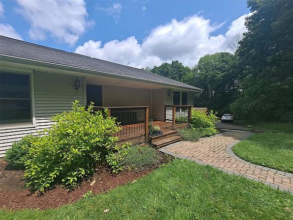 Stunning setting for this beautiful home. This home reveals itself as you drive down the private driveway. Sunset views overlooking the sweeping yard and hillside visible from the deck, kitchen, family room to name a few spots. Oversized open deck plus covered front porch. Dining room is currently being used as an office. Walk in pantry 4x6. Updated appliances in the kitchen. Wood floors are cherry and bamboo. Lower level has 2 large bedrooms plus and in law apartment. That space has its own bath, laundry and kitchen. Storage thru out the home including the pull down stairs to an enormous walk up attic. Truly a home that will steal your heart.