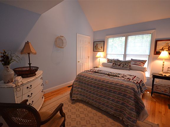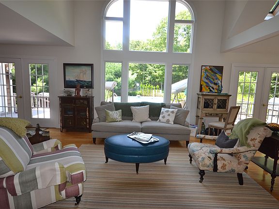 On a quiet lane sits this traditionally shingled, spacious Post Modern with 5 bedrooms, 4.5 baths, open cathedral ceiling great room with fireplace, soaring windows & skylights, den with fireplace, library, gourmet kitchen, and lots of French doors leading to a heated 20' x 40' terraced pool & hot tub. Two master bedrooms are located on the 1st floor and 3 bedrooms, 2 baths are on the 2nd floor. Other amenities include central air, a finished basement with bath & extra rooms, and an attached two-car garage. Beautifully landscaped and oh, so private! REDUCED, NOW $1,595.00