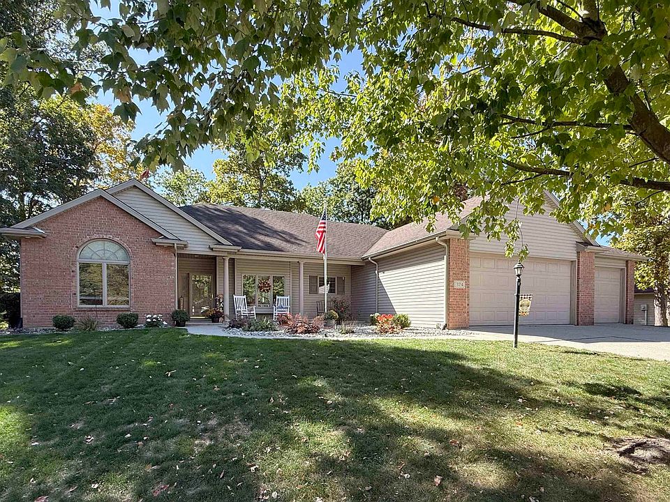 Spectacular and spacious quality built 3 bedroom 2 bath ranch with 3-car attached garage in Eagle Glen. This beautifully maintained home, both inside and outside, provides an inviting open floor plan with 9 foot ceilings and lots of upgrades including the 3 year old high efficiency natural gas forced air furnace and central air, updated landscaping in 2025 and flooring in primary bathroom. The very large great room is equipped with a gas fireplace and the relaxing 4 season room provides for a second living zone. The finished 3 car garage provides that extra space for the toys or potential space for a workshop. The extra large 1 1/2 lot wooded setting provides the space outside that is hard to find.