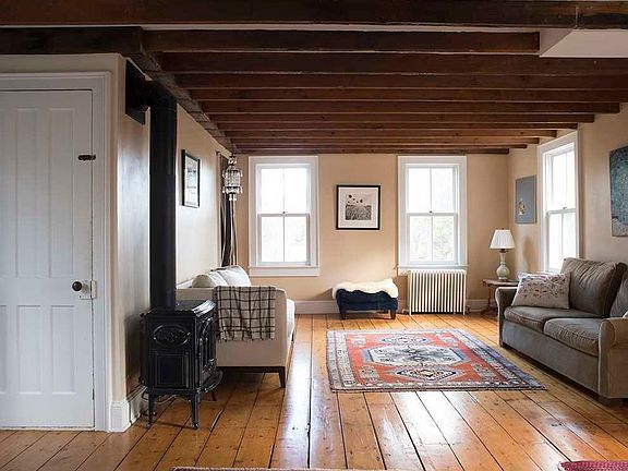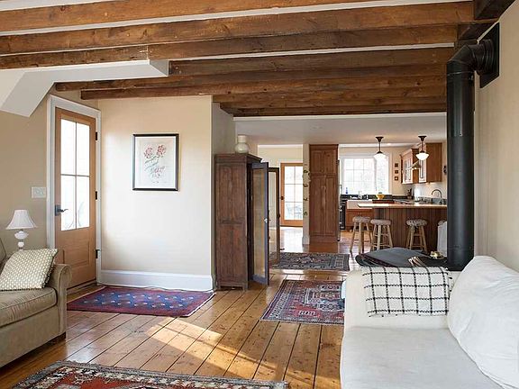 Secluded Germantown Farmhouse on 3 acres. Set well back from a quiet town road this 3 Bedroom/2.5 Bath Farmhouse has been thoughtfully restored & updated. The first floor includes a new kitchen with custom cabinets and a Smeg range, new formal diningroom, livingroom with exposed beams & a heating stove, a mudroom & half bath. The second floor features the masterbedroom suite with vaulted ceiling, balcony and master bath with artisanal tiles, 2 guest bedrooms and a guest bath. Wideboard floors throughout. Updated mechanicals. Stone patio. Raised bed gardens. Seasonal Catskill Mountain views. Private yet close to the hamlet of Germantown.