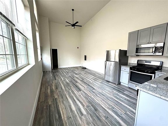 Check out this amazing end unit apartment home with loft! No steps from the parking lot into the unit. When you enter, you will be greeted with soaring 15 1/2 foot ceilings, an open concept living/dining/kitchen area, circular stairs up to the loft, a spacious bathroom and huge bedroom. And a walk in closet the size of a bedroom! Tons of light and great storage space in the unit. This also comes with a storage locker in the building too. Private entrance into your unit. Rent includes water, sewer, trash, snow removal, lawn care and wifi. Washer/Dryer hookup in the unit. Gas everything.... gas heat, gas cooking, gas hot water and central air! Pets considered with additional fees.