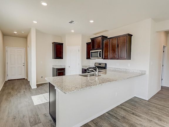 Welcome to this gorgeous neighborhood! Terrific 4 bedroom and 2 bath home with a 2 car garage. Enjoy preparing meals in this impressive kitchen equipped with ample cabinets and generous counter space. Step inside this beautiful interior with vinyl floors throughout, plenty of natural light, and neutral palette. The main bedroom boasts a private ensuite with a walk-in closet. Other bedrooms offer plush carpet, ceiling fans, and sizable closets. Entertain on the covered back patio, perfect for barbecues. Don't miss this incredible opportunity.