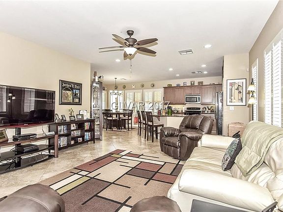 This home rests in the charming guard gated community of Ardiente. The open floor plan is bright with a great use of space. Showcases of the home are the large tile floors, upgraded cabinetry, and covered patio. Additional highlights include, planation shutters throughout, a sunsetter shade in the backyard, and a LifeSource water filtration system. This home is near the 215 and VA hospital as well as amenities.