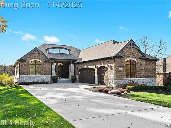 Welcome to your dream ranch home in Brighton’s exclusive Peninsula neighborhood—a custom-built (2021) ranch home with luxury finishes, impeccable design, serene surroundings, and effortless one-level living. Step inside to soaring 11-foot ceilings, elegant tile flooring, and abundant natural light that floods every corner. The gourmet kitchen is a chef’s delight, equipped with premium appliances, Lafata cabinetry, a stunning waterfall island, and a spacious walk-in pantry, flowing seamlessly into the open-concept living area with wide, unobstructed views of the tranquil wetlands.Outside: Private oasis with unobstructed views; expansive yard, walkout lower level with additional space to entertain or relax. Five spacious bedrooms, three modern baths. Primary suite features spa-like bath and ample closets. Custom finishes in the lower level were completed in 2024. 2 lower level bedrooms with egress windows and modern full bathroom. Additional space to entertain or relax with more open square footage which included chic and simple wetbar. Oversized three-car garage with tall ceilings perfect for further additions like potential car lifts or a golf simulator. Located in a cul-de-sac of Pointe Shore, community, pool, Hilton Elementary, and amenities just minutes away. No Open House. Schedule your private viewing with Griffith Realty.