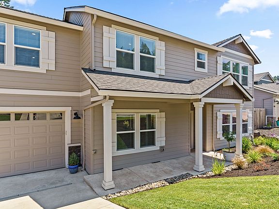 Located in South Eugene’s prestigious Moon Mountain subdivision, this beautifully built 2023 home by award-winning MonteVista Homes showcases the popular Douglas Floorplan, offering 4 bedrooms, 3 full baths, and 2,479 sq ft of thoughtfully designed living space.The open-concept kitchen is a chef’s dream, featuring quartz countertops, stainless steel appliances, a farmhouse sink, large island with 5-burner gas range, and a custom designer range hood. The kitchen flows effortlessly into a spacious living area complete with a gas fireplace and expansive views—ideal for both entertaining and everyday relaxation. Upstairs, you'll find a versatile bonus room, two well-sized bedrooms, and a stunning primary suite with a spa-like bath that includes a soaking tub, tiled shower, and dual vanities. On the main level, a private guest suite with full bath provides the perfect space for visitors or a home office. Enjoy outdoor living year-round on the covered patio overlooking a professionally landscaped yard with a sprinkler system—and take in breathtaking views of the city and surrounding mountains. All of this just minutes from the University of Oregon, I-5 access, and the vibrant amenities of downtown Eugene.