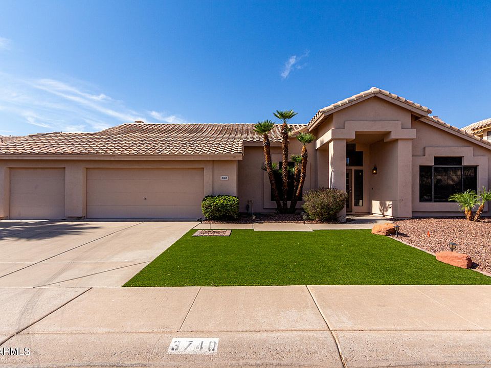 Charming 4-bedroom home located in Parkside Estates. Displaying 3 car garage & low-care landscape on an almost 10,000 SQ FT LOT. The interior boasts a neutral palette, abundant natural light, and newer tile. The eat-in kitchen showcases wood cabinetry, built-in appliances,, & an island w/ a breakfast bar, formal dining room and beautiful living room for entertaining. The main bedroom has direct backyard access, a private bathroom w/ dual sinks & a walk-in closet. Large laundry room with cabinets for lots of storage. Soothe yourself in the large backyard showcasing a large covered patio, & mature trees—an ideal setting for gatherings or peaceful moments of solitude. Low HOA and Walking distance to many restaurants and A rated Corona Del High School and Kyrene Schools,