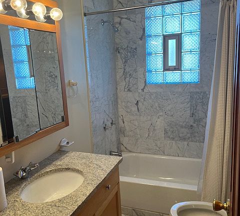 Discover this beautiful rental property featuring gleaming hardwood floors throughout and a modern gourmet kitchen equipped with granite countertops, refrigerator, stove, and microwave perfect for cooking and entertaining.