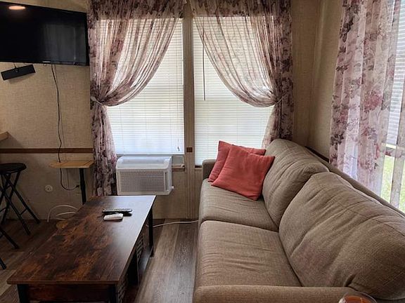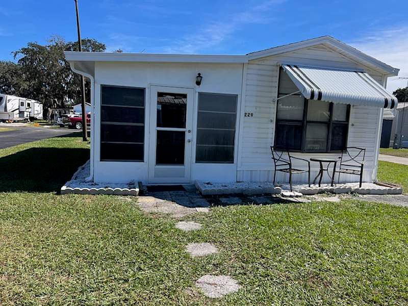 This charming 1.0 bed 1.0 bath Park Model at Landing RV Resort in Zephyrhills, FL offers 468 square feet of cozy living space. Built in 1990 by PARK, this home is perfect for a single person or a couple looking for a winter or full time home in Florida. The interior features a Living Room, Dining Room, Master Bedroom, Kitchen, and a Florida Room, providing plenty of space for comfortable living. The home also includes essential appliances such as an Oven, Fridge, Microwave, Washer, and Hot Water Heater. Home is furnished and has a storage Shed and Bedroom furniture both brand new. New roof shingles, carpet and one year old Laminate flooring. New Window Unit AC and two brand new ceiling fans with remote controls. Outside has a fresh coat of paint, Trim and Window Awnings. This home is a must see. Located in the beautiful community of Landing RV Resort, residents of this home can enjoy access to various amenities and activities. Heated Pool, Shuffleboard, Bocce Ball and a brand new pickle ball court are some of the many things Landing has to offer. The community offers a relaxing atmosphere with scenic views, perfect for peaceful walks and outdoor relaxation with a boardwalk to the island on the pond to set with your morning coffee or afternoon drinks. Additionally, residents can socialize with neighbors and participate in organized events, creating a sense of community and companionship. With its convenient location in Zephyrhills, FL, this Park Model Home at Landing RV Resort provides a comfortable and enjoyable living experience for its residents.