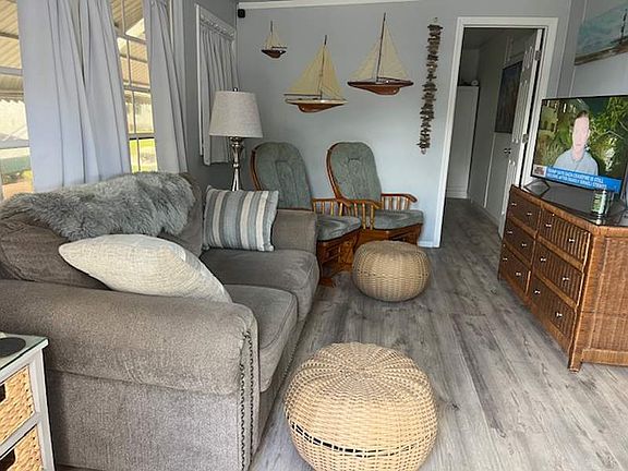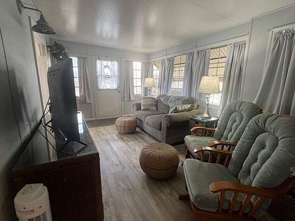 Step into warm, cozy comfort with this beautifully decorated two-bedroom, two-bath Park Model home, perfectly situated on a corner lot offering ample storage both inside and out. Featuring a spacious living area, abundant cabinet space, and tasteful furnishings, this home combines comfort and style effortlessly.Recent upgrades include brand-new A/C ductwork, new laminate flooring, updated plumbing and electrical, a new toilet, and a durable new metal roof-providing modern amenities with timeless charm. Ideally located just across from our scenic pond and island, this home offers peaceful views and a serene setting.Nestled within a vibrant 55+ community filled with amenities, you'll enjoy a wide range of activities and conveniences. Take advantage of the heated pool, shuffleboard courts, horseshoes, pickleball, and a nature walk with picnic tables and seating leading to the pond's island-perfect for morning coffee or afternoon relaxation. The outdoor kitchen and regular community events ensure there's always something fun and engaging to enjoy.This home is truly a must-see to appreciate everything it has to offer. Don't miss out-schedule your private tour today!