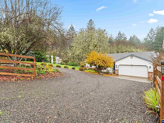 Charming 1993 home sits on 2.5 acres with a large shop & fruit trees galore! Country feel, not too far from town! 1-level home w/ open floor plan. Primary BR w/ ensuite BA featuring the comforts of a walk-in shower, walk-in closet, & french drs that open to the large back deck. Outside, a dreamy 48x36 SHOP, 3 sheds, a greenhouse, various fruit trees, & a seasonal creek! Relax or entertain on the large back deck surrounded by peaceful, wooded views. A perfect mix of nature & functionality awaits!