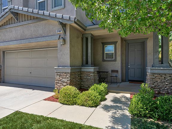 Situated in the highly sought after Anaverde community of West Palmdale, this beautiful executive home is just what you've been searching for! An open, airy floorplan greets you upon entering the light-filled living room, which flows into the comfortable dining area. A Cook's kitchen offers ample cabinet space, counter space and breakfast bar. Upstairs, the large master suite boasts a full private bathroom w/ dual sinks, separate tub and shower enclosure and large walk in closet with custom organizer. Two additional bedrooms are great for kids, guests or office space, and doing laundry is a breeze with upstairs laundry room. The large backyard is perfect for entertaining, playing or just relaxing! Community amenities include recreation area, park, playground, baseball field, and exercise trail. Conveniently located near outstanding schools, shopping, dining, and freeway access. Welcome home to 37407 Hazelnut Place!