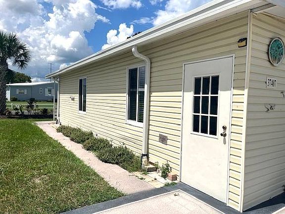 This well-maintained and thoughtfully upgraded home offers peace of mind, comfort, and style. Built with durability in mind, it features 135 mph-rated shingles installed in 2022, waterproof laminate flooring, Private back porch-perfect for enjoying your morning coffee. Inside, you'll find a bright Florida-themed décor with upgraded window coverings throughout. The spacious living room includes a newer 40-inch TV, antenna, and Xfinity-ready cable/internet hookup. A large Florida room with a pull-out sofa extends your living space and connects to a handy storage/workshop area, ideal for a hobbyist or DIY enthusiast. The kitchen offers abundant storage and counter space, while the bathroom is updated with a shower/tub combination and a new chair-height toilet. The bedroom features a newer queen bed, dual closets, and a ceiling fan for comfort. Additional highlights include: Turnkey and fully furnished, including washer & dryer New waterproof laminate flooring throughout New gutters and screens all around Secure back door leading to porch Hot Water Heater 2019 Home leveled in 2022 with premium support pads Improved drainage system sloping to park drainage This home has been exceptionally well maintained, with numerous upgrades focused on structural integrity, comfort, and weather protection. A truly rare find, offering better-than-average quality and value!