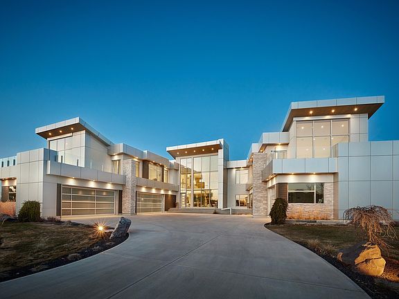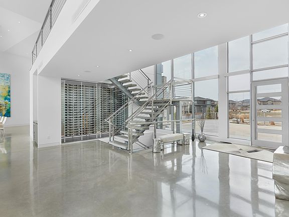 Nestled on a 60,041sqft lot (1.4acres) - a natural setting & attention to detail provide the perfect fusion between structural strength & architectural form in this Modern architecture home with 360-degree views of the river valley & downtown. Encompassing 7818sqft plus a finished 3997sqft walkout basement (11,814sqft) - 5 beds, 6 baths & 9 car-garage. This home is constructed with superior commercial grade craftsmanship & captured the graceful perceptions of the beauty of nature & contemporary elegance with this home's clean lines & organized living. The interiors are characterized by their understated beauty & fluid interpretation of space. The main floor has bountiful natural light streaming in from the numerous windows throughout with 20ft ceilings, modern elegance & style, gourmet kitchen, butler kitchen, multi-level wine room & views of the river valley from every level. From the outside meticulously landscaped 1.4 acres to the construction & the interior – this home is a true entertainer's dream!