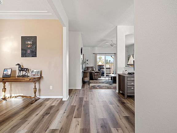 Beautifully updated home with white picket fence and quaint covered front porch. Kitchen boasts granite counter tops, tile floor, built-in microwave, stainless steel appliances,eating bar and informal eating area that opens to family room and formal dining (could be 3rd bedroom). Spacious primary suite with 2 closets, celing fan, tiled walk-in shower and 2 sinks. Second bathroom is also fully remodled. Newer Vinyl plank flooring. Laundry room leads to 2 car garage with opener. Fully fenced yard with newer covered trex deck and storage shed. Room for boat or small trailer parking. Ductless Heat pump and New Roof in 2020. Don't miss!