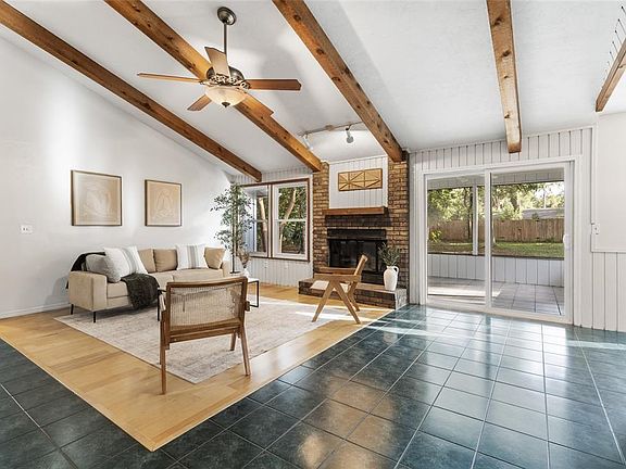 Welcome home to Rock Creek, one of Northwest Gainesville's most beloved neighborhoods! This 4 bedroom, 2 bathroom home has been lovingly maintained and is ready for new owners. You'll appreciate the attractive and durable metal roof (2012), updated thermal efficient windows with a transferable warranty (2020), updated water heater (2021), updated HVAC with 10 yr warranty (2022), updated fencing & gate (2023), all new exterior paint, gutters, washer, dryer, and stove (2025), and so much more! This home is situated on an oversized lot (0.41 acre) and located at the back of the south loop making it extra quiet. When you arrive you'll enjoy the mature landscaping, updated exterior, and side entry garage with plenty of parking space for family and friends. Step inside to beautiful maple hardwood floors, cedar wood details, a brick fireplace, and two large living spaces. The dining room, kitchen, and breakfast nook flow seamlessly. The primary suite is spacious and well lit with a peaceful view of the backyard. Three guest bedrooms and a full guest bathroom complete the interior of the home. There's so much to love about this home and neighborhood: Rock Creek is conveniently located off NW 34th Street where Possum Creek and Three Lakes Creek converge. It's a beautiful canopied sanctuary right in the heart of Gainesville with miles of paved road so you can walk, run, or bike without ever leaving the neighborhood. Neighborhood amenities include a well-shaded playground and community pool & tennis courts creating a family-friendly environment. Come fall in love today!