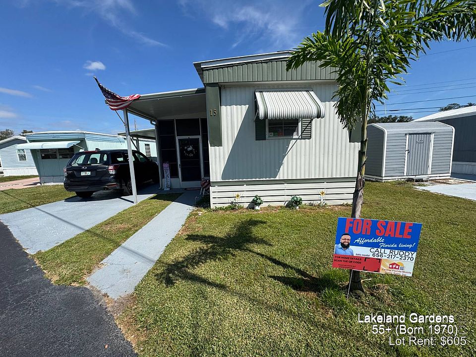 55+/LOTRENT$605/1977/2BED2BATH/624SQFT/SCREENED-IN-PATIO 2-bedroom, 2-bath home located in the quiet, family-owned Lakeland Gardens Mobile Home Park. Step through the large, screened patio and into the inviting open floor plan, where the living room and kitchen flow together, perfect for easy everyday living. The kitchen features ample cabinet space and a convenient hallway pantry for extra storage; there is also a built-in desk nook area in the living room. Both bedrooms are well-sized, with large closets, the primary has a double closet with a built drawers between adding a vanity space. One bathroom includes a roomy vanity and a shower/tub combo for added comfort, while the other has a walk in shower and smaller vanity. Outside, you'll enjoy a large driveway with a covered carport, a spacious storage shed, and a open patio. The screened patio includes both front and back entry doors, giving you added versatility and a great spot to enjoy Florida living year-round. Lakeland Gardens is a well-maintained, gated 55+ community featuring a freshly painted clubhouse, sealed roads, and water included in the lot rent. Residents enjoy access to a clubhouse, laundry facilities, and this home is conveniently located near the laundry house for easy access. Two small pets are welcome (breed restrictions apply). Located close to the Polk Parkway and Lakeland's shopping and dining, this home offers affordable, comfortable living in a fantastic location. CALL FOR A SHOWING TODAY!