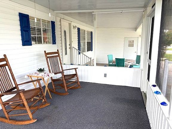 This beautifully maintained home features a spacious split floor plan and has been freshly painted inside. The large living room flows seamlessly into the dining area and kitchen, which boasts new stainless steel appliances and elegant crown molding. The sizable master suite offers privacy on one side of the home, while two guest bedrooms and a full bath are conveniently located on the other. New Stainless Appliances 2021 New Carpet in the Living Room Enjoy the convenience of an inside laundry room with extra storage, a double carport, and an extended golf cart shed with additional storage space. Relax on the screened-in front porch and take in the lovely view. With attractive landscaping and thoughtful updates throughout, this home is truly a must-see!