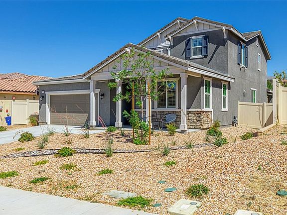 Located in Palmdale is this 5-bedroom, 3.5 bathroom, 3,082-SqFt desert gem with attached 2-car garage is waiting for you! The first-floor features beautiful gray flooring throughout the bright dining room and large living room. The kitchen is complete with quartz counter tops, stylized tile backsplash, stainless-steel appliances, center kitchen island with breakfast bar & wet bar nook and a butler's pass through leading into the dining room. Tap into your culinary mind! This gorgeous home features two master bedrooms, one of which is down stairs. Venture up the carpeted stairs to a multipurpose space & convenient laundry room with laminate floors. Down the hall you will find the master bedroom, two secondary bedrooms and a main bathroom with dual sinks. Outside to the backyard is a covered patio, grassy area & side yard access, creating a great space for entertaining or simply relaxing. Located close to parks, Anavarde Elementary School & is commuter friendly!