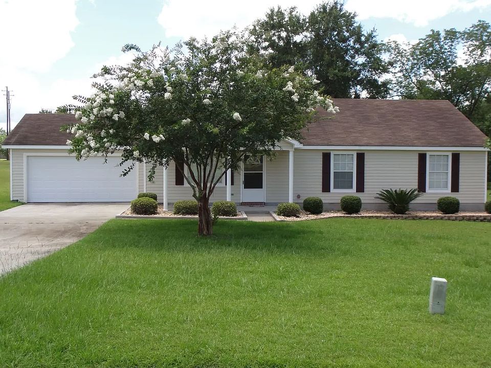 The house is about equal distance between Moody AFB and Valdosta Georgia about one mile west off Hwy 125. Three large bedrooms two full bathrooms spacious living room and kitchen. Also with a two car garage on 3/4 of an acre of land.