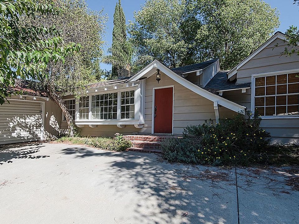 Highly sought-after Sherman Oaks, south of the boulevard location with a traditional ranch-style home set high above the street. Owner-occupied buyers, are you looking to do your own home make-over project? This is the spot! House has great bones and is ready for your imagination. Three bedrooms and two bathrooms are situated in an ideal floor plan. Large living room area has many windows for lots of light, big fireplace and glass sliders overlooking the backyard area with pool. Huge dining area in kitchen, which lends itself perfectly to a future center island kitchen layout and design. Blonde hardwoods at living areas are in good condition. Master bedroom has walk-in cedar-lined closet and front bedroom has coved ceilings with two closets and built-in dresser drawers. Attached two-car garage has laundry hookups and built-in storage loft to boot. Be sure not to miss this opportunity to build your own equity.