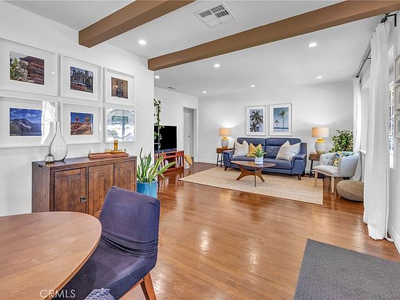 Welcome to this Carson Park beauty! This thoughtfully remodeled mid-century home features 3 bedrooms, 2 bathrooms, gorgeous refinished hardwood floors, central AC, dual paned windows, a newer roof and a beautiful backyard with an outdoor fireplace and charming patio area. The remodeled kitchen features timeless white Shaker cabinets providing lots of storage space, quartz counters, newer stainless steel appliances and tons of natural light. The primary en-suite bedroom has a slider out to a wood deck overlooking the stunning yard. The other 2 bedrooms are light and bright and one has an attached remodeled bathroom. Additional upgrades of this home include interior laundry and a finished garage with epoxy floor. Located near shopping, restaurants and El Dorado Park with it's miles of walking paths, nature center, golf course and dog park.