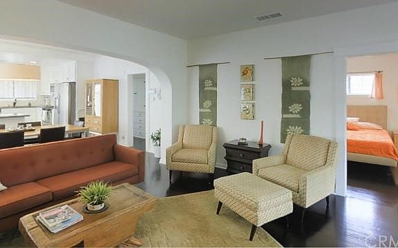 Stylish Cal Heights Spanish Bungalow! This large two bedroom two bathroom home effortlessly combines modern design with classic 1920's architectural details.Ebony stained hardwood flooring throughout living room, dining room and bedrooms.Kitchen and dining room open to the living room creating a large open floor plan great for entertaining! Custom details with glass-shelved nooks, 12x24 tile floor in kitchen and master, penny tile floor in hallway bath, designer color on walls around fireplace and window coverings throughout.Kitchen is HUGE with large island, quartz counters, white subway backsplash, white shaker-style cabinets and stainless steel appliances.Hallway bath has jetted tub surrounded by stylish tile walls and newer vanity.Amazing master suite has a small office/dressing area with French doors leading to the rear yard.TWO SETS OF CLOSETS IN THIS ROOM!The master bath has dual separate vanities and a large walk-in shower.Large two car garage has finished walls and new opener.An enormous laundry room with tons of storage. New central heat/ac.Outdoor space is perfect for SOCAL living with screened-in porch and professionally landscaped front and rear yards.Remote control LONG gated driveway.CHECK OUT OUR 3D TOUR ON THE VIRTUAL TOUR LINK