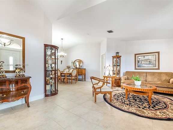 Arrive to tropical palm trees & live worry free in this spacious and gorgeous 1998 home with a newer 2016 quality tile roof & a salt water pool! Enter through double doors to a bright open living area with vaulted ceilings. The south wing of the home features all 4 bedrooms, with 2 side by side in front, the third off the hallway & the primary bedroom in the rear with ample en-suite bathroom. Lovely kitchen with breakfast nook overlooks the patio/pool. A separate home office is located on the north end near 2 car garage and family room. Dine at Islas Canarias or drive up Bird Road through Coral Gables and Coconut Grove for all that Miami has to offer! Near FIU and highways!