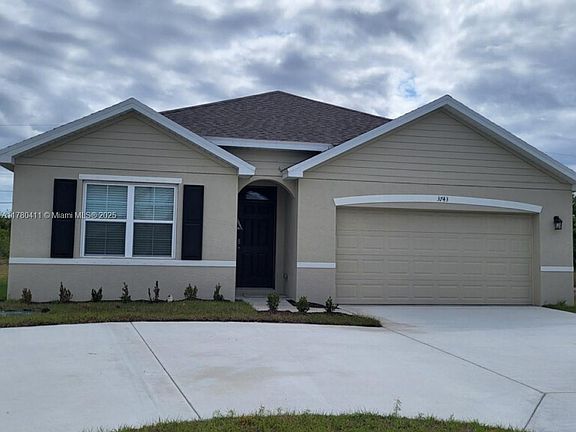 Newly built traditional Cali-style 4BR/2BA home with 2-car garage. Enjoy an open floor plan, spacious kitchen with large island, walk-in pantry, and 36" cabinets with stainless steel appliances. Smart home package included. Tile throughout, with cozy carpeted bedrooms. The primary suite features a king-size layout, oversized walk-in closet, and linen storage. Relax on the trussed covered lanai overlooking a fully sodded lawn with shrubs, mulch, and 4 hardwood trees. No HOA. Designed for comfort, space, and high-end living