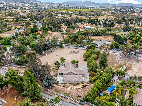 Welcome to your private retreat in the heart of Temecula’s renowned Wine Country. This charming single-story ranch home sits on over 2.5 acres of flat, usable, fully fenced land, offering the perfect blend of peaceful rural living & convenient access to town. With 1,975 SF of thoughtfully designed living space, plus an approximate 600 SF enclosed sunroom, this 3-bedroom, 2-bath home offers comfort & versatility. From the moment you arrive, you’ll be greeted by wide-open skies, nearby rolling vineyards & a sense of privacy & quiet seclusion. The property is fully fenced, featuring an automatic entry gate & two additional gates providing access around the perimeter. Inside, the home boasts vaulted ceilings, abundant natural light from skylights, & dual-pane windows & sliders that bring the outside in. The open concept layout seamlessly connects the living, dining & kitchen areas, making it ideal for both everyday living & entertaining. The upgrades completed here go beyond standard construction practices, offering improvements rarely found at this price point. The exterior has been virtually rebuilt with HardiePlank fiber cement siding, valued for its durability & fire resistance, & enhanced with a stacked stone detailing to elevate curb appeal. The 2x6 framing is insulated with R-19 insulation & interior walls are finished with 5/16" drywall for superior thermal & acoustic performance. A concrete tile roof, paired with a fully replaced HVAC system & ducting, ensures energy efficiency, year-round comfort & long-term peace of mind. These aren’t just cosmetic updates, they are structural enhancements that reflect a true commitment to quality & care. The expansive 2.5+ acre parcel offers limitless potential. Create lush gardens, build a pool, add a guest house, bring your horses, or even plant your own vineyard, your options are endless! The detached shop is fully insulated & drywalled, featuring oversized motorized roll-up doors at both ends. It provides drive-through access & flexible use for car storage, a workshop, or hobby space. Large enough to house at least four vehicles (or more with lifts), it’s a dream setup for automotive enthusiasts, hobbyists, or home based business owners. Just minutes from award-winning wineries, boutique shopping & dining, this home offers the best of both worlds: tranquil country living with city amenities close at hand. This is your opportunity to own a beautifully upgraded slice of Wine Country at an exceptional value.