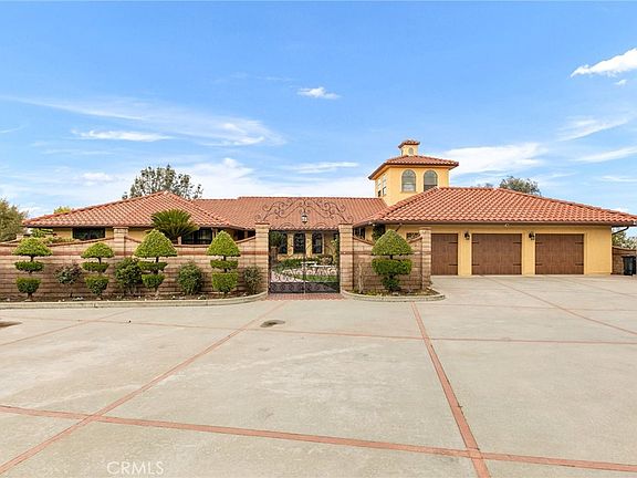 Oak Hills pool home with paid solar and an attached three car garage plus a detached carport on over 5 acres. This comfortable, well maintained property provides a quiet, private setting that takes you away form the daily hustle. Despite only hearing the sounds of the birds and the breeze on your back patio, you are just a 10 minute drive to I-10, Stater Bros, and Starbucks. The peaceful setting is complimented by the home's many comforts and quality finish materials. Ample parking, either via the direct access three gar garage, detached three car carport, or expansive driveway means plenty of room for friends and family, or just your personal toy collection. Guests enter the home through a well manicured, gated front patio. A stunning front door, originally sourced from a church, leads you into the front entry way with teak flooring. The living room, with vaulted wood ceilings and a fabulous view, leads straight into the family room with a built in wet bar and a fireplace. The adjacent kitchen features an oversized pantry, and is connected directly to the dining room. The bedrooms, including a primary with direct access to the backyard, are spacious and comfortable. A staircase leads you up to a study area and then the sitting room, perfect for a good book while enjoying the expansive views. Outdoor amenities include the in-ground pool and spa, a large covered patio with roll away sun shades, and a level, easily accessible area for a future vegetable garden, vineyard, or small grove. A dirt access road is easily accessible from the street, and simplifies property accessibility and maintenance.