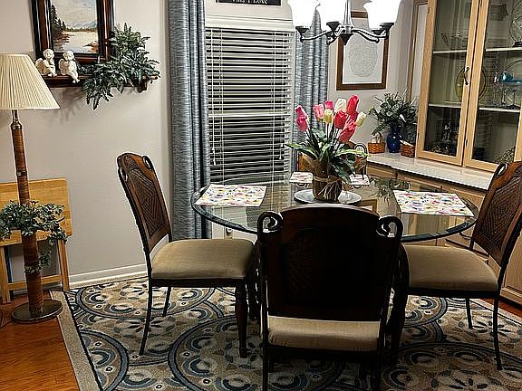 The floor plan is not the typical. , The cherry cabinets and all the pullout shelves are something I’d always wanted. I love my hardwood floors. I love that we are so close to shopping. The amenities are too numerous to mention them all, but we truly enjoy the two swimming pools, the hot tub, Pickleball courts, shuffleboard courts, horseshoes. Lots of activities going on in the park. I love that we have a lake and a little pond to sit and relax at. Terrific neighbors.