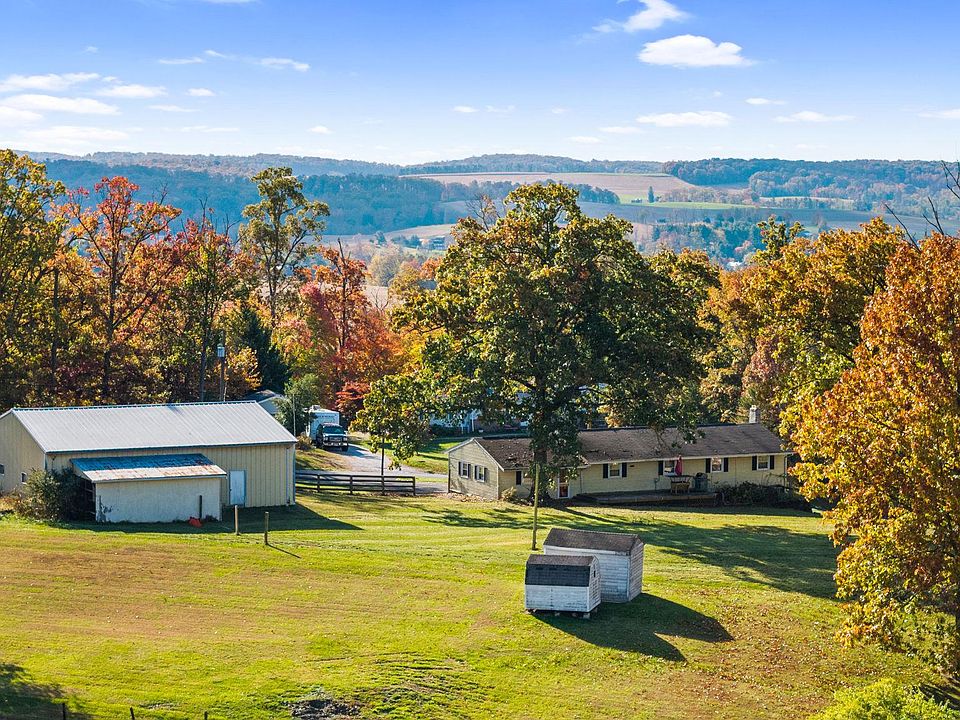 Opportunity is calling! Wonderful 3 bedroom, 2 full bathroom rancher home on 3.17 acres, plus an additional 2.18 acre separately deeded lot with its own well. Large open kitchen with oversized family room. Nice hardwood floors throughout home. Recently renovated full bathroom on the main level plus newly added full bathroom on lower level. New septic system. Recently added recessed lighting. Huge detached two story garage with car lift- perfect for storing landscape equipment, a car enthusiast, or the workshop of your dreams. Multiple porches and places to enjoy the outdoors including: covered front porch, back porch for grilling and enjoying the views, side patio with brick outdoor fireplace. A peaceful country retreat to call your own!