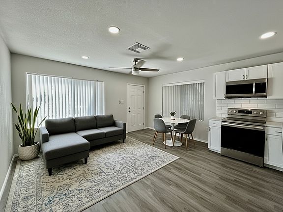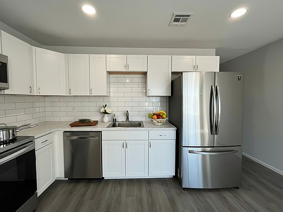 Welcome to 3744 N 12th St, a stylish and updated apartment offering a bright, open living space with faux wood flooring, ample natural light, and ceiling fans in every room. The kitchen features sleek white cabinets, quartz countertops, subway tile backsplash, and stainless steel appliances, while an in-unit washer/dryer adds convenience.